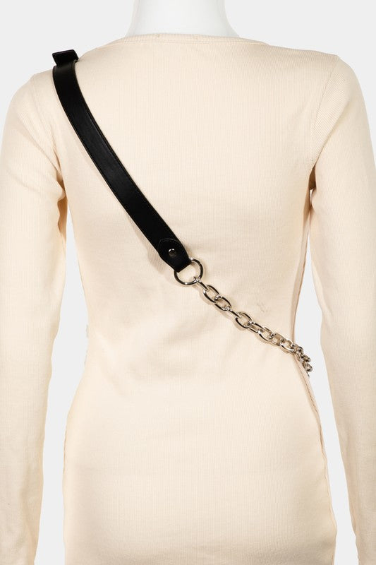 Fame PU Leather Chevron Strap Crossbody Bag